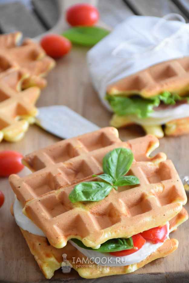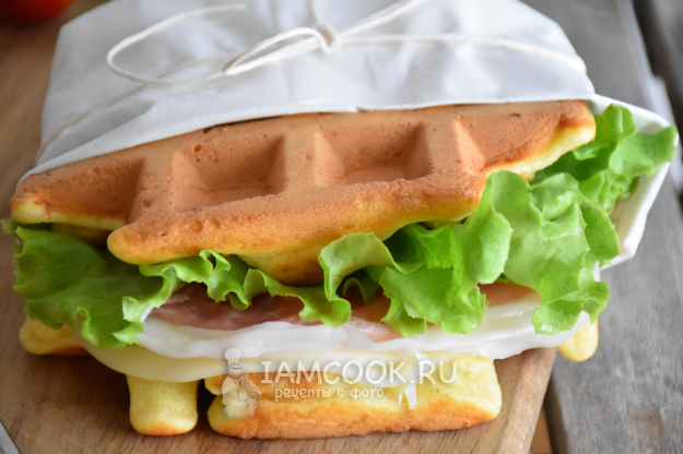 Закусочные сэндвичи на вафлях готовы. Приятного аппетита!