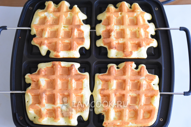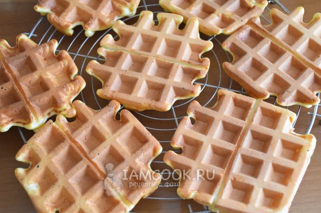 Разогреть электровафельницу. Выложить тесто. Выпекать вафли в вафельнице, следуя инструкции. Я выпекаю 5 минут.