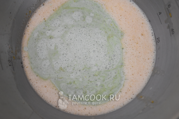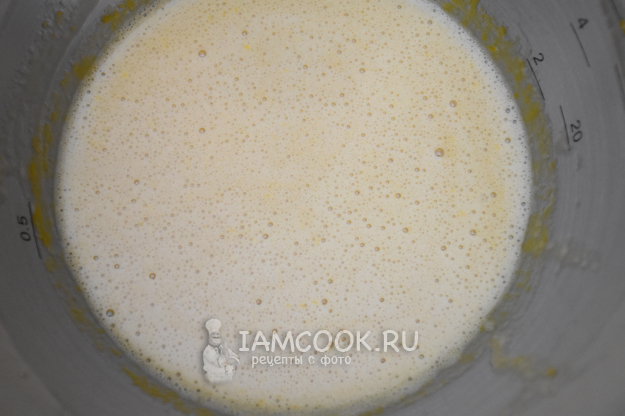 Отдельно соединить яйца, сахар и лимонный сок. Взбить до получения пышной массы.