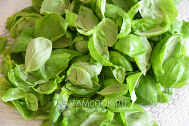 Листья базилика помыть, обсушить бумажным полотенцем.