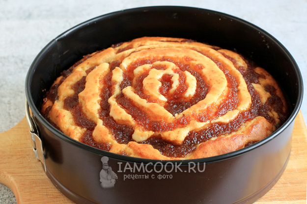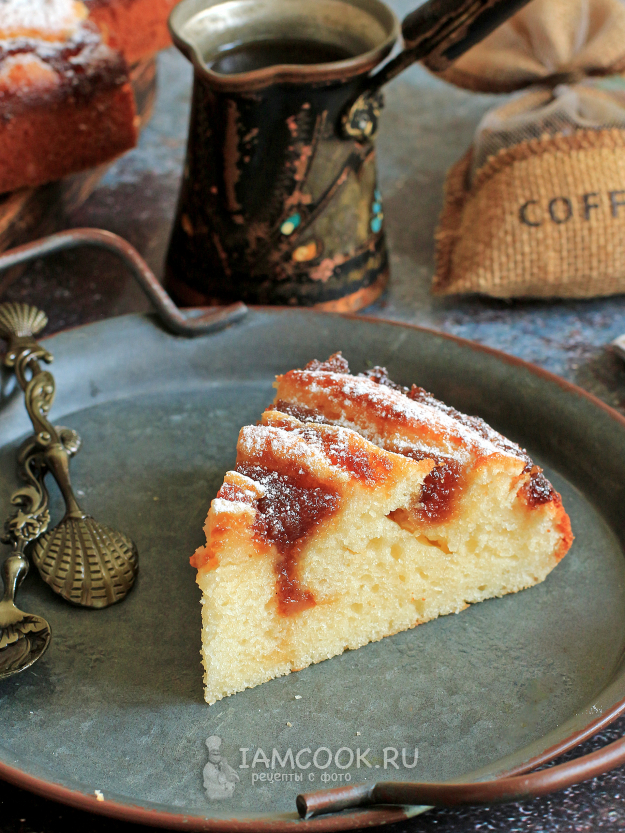 Пирог с яблочным джемом готов. Если надавить пальцем на верхушку, то она пружинит и не проваливается.