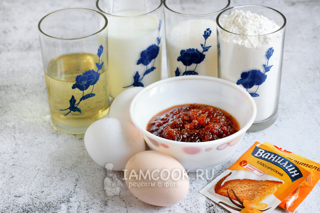 Итак, для приготовления пирога с яблочным джемом в тесте подготовьте и отмерьте все необходимые составляющие. У меня все продукты - из холодильника, ничего заранее не грела.