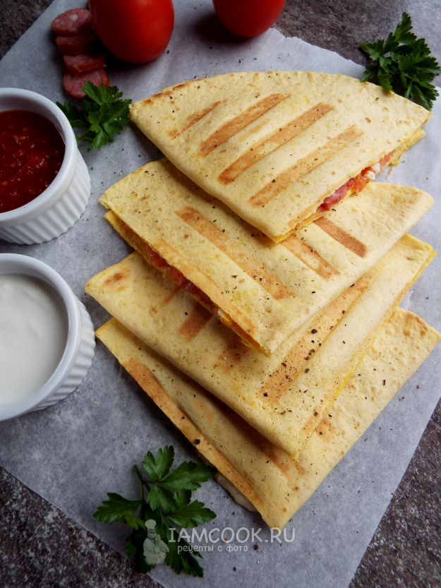 Можно поджарить кесадилью на масле, так будет ещё вкуснее.