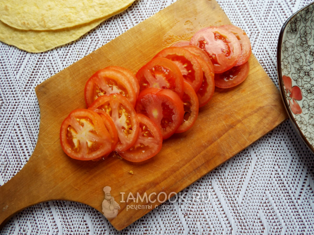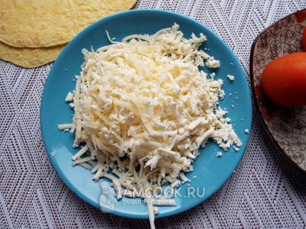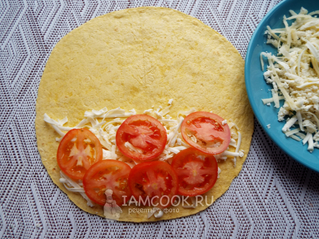 Хотя и этот вариант начинки вышел сочным. У меня сырная тортилья, подойдет и пшеничная!