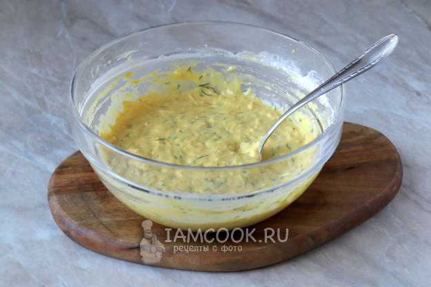 На данном этапе в тесто можно добавить любую мелко нарезанную зелень, в моём случае - укроп, но это по желанию.