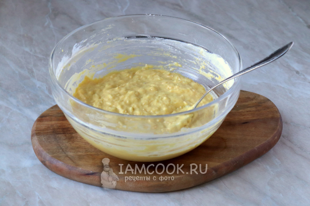 Тщательно перемешайте, чтобы не было мучных комочков. По консистенции тесто должно напоминать сметану.
