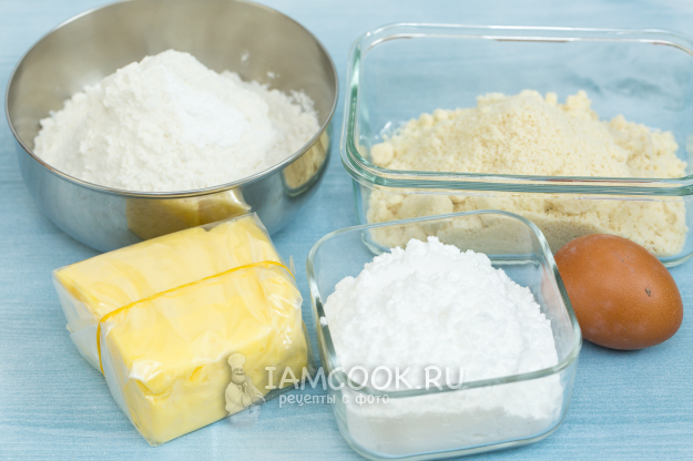 Для приготовления миндального песочного печенья подготовьте продукты по списку.