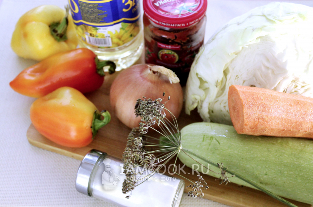 Подготовим набор продуктов для консервирования перцев, фаршированных овощами, на зиму в томате.
