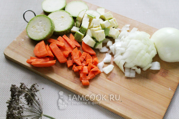 Промытые овощи порежем примерно одинаковыми кусочками.
