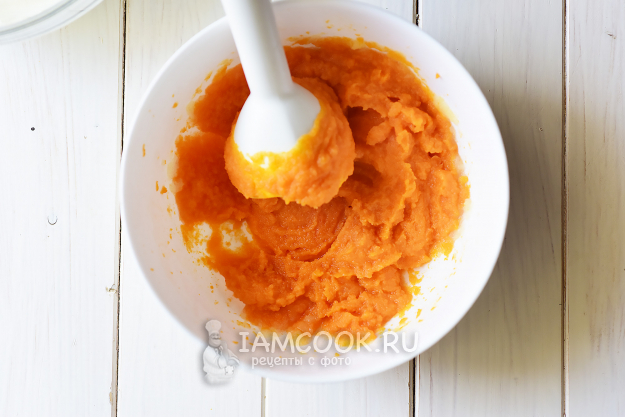 И погружным блендером перебьем морковь и яблоко до консистенции однородного пюре.