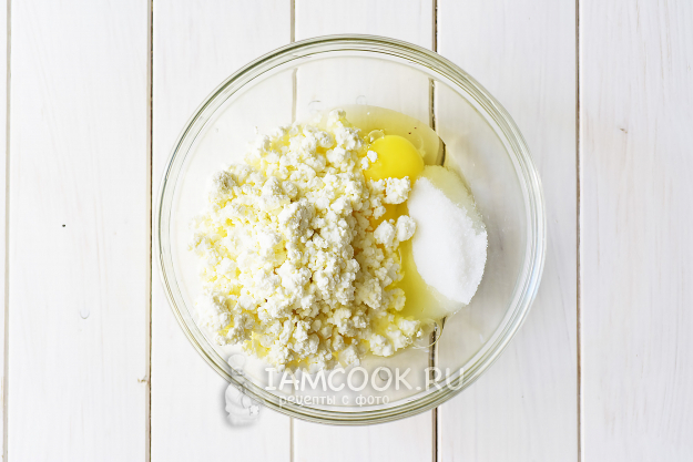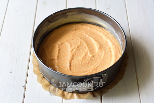 Дно формы застелем бумагой для выпечки и все внутренние поверхности формы смажем сливочным маслом. Выложим в подготовленную форму творожную массу, выравнивая ложкой. Отправим выпекаться при температуре 180 градусов 45-50 минут.