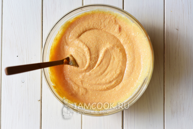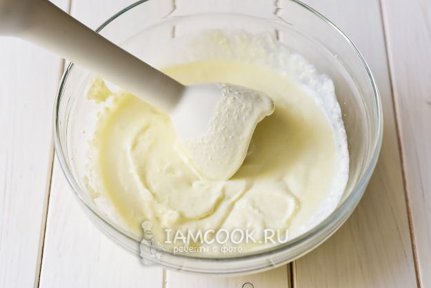 Перебьем погружным блендером эти ингредиенты до получения однородной смеси.