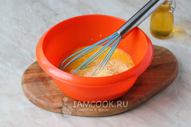 Введите кукурузную муку и разрыхлитель.
