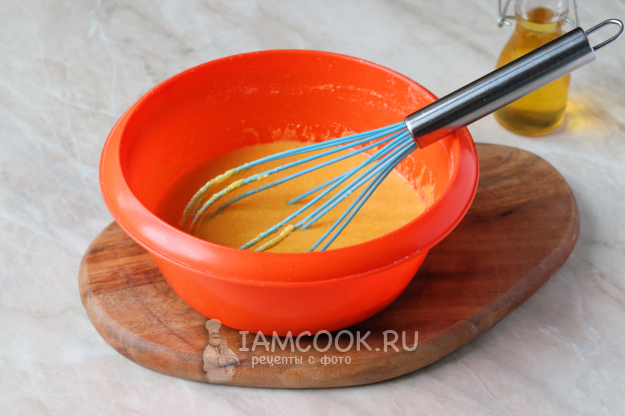 Тщательно перемешайте, чтобы не было мучных комочков. Тесто должно получиться средней густоты (как на фото). Учитывая, что мука у всех разная, её может понадобиться немного меньше или больше, нежели указано в списке ингредиентов, ориентироваться нужно по консистенции теста.