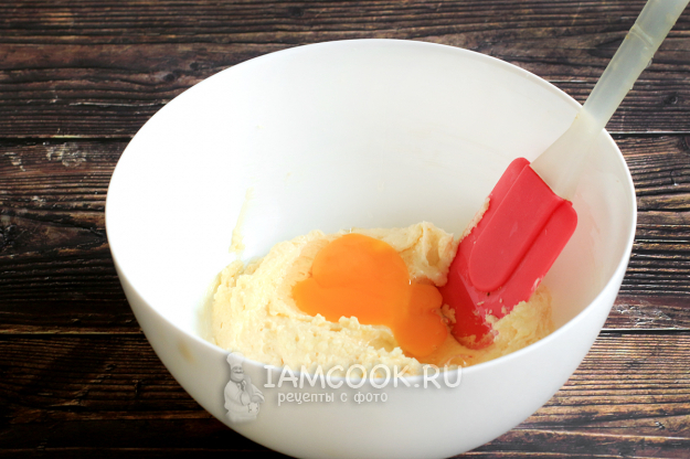 Масло взбейте добела с сахаром. Затем добавляйте по одному яйца и взбивайте дальше до получения пышной и гладкой массы.