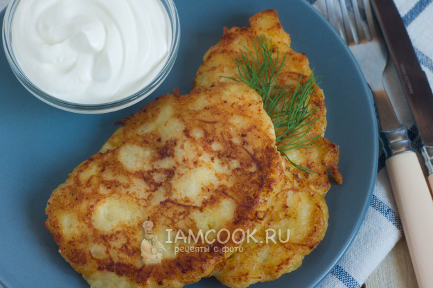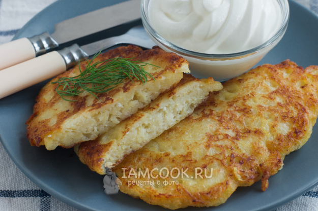 Готовые картофельно-творожные оладьи можно подавать к столу сразу же после приготовления. Хорошо к таким оладьям подать свежую сметанку! Приятного аппетита!