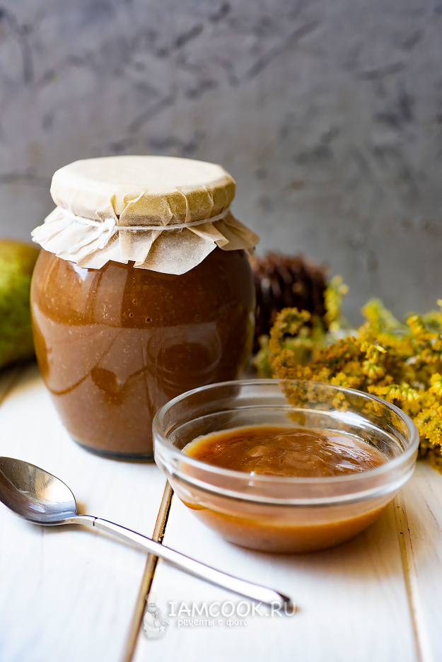 Кастрюлю с грушевой массой снимем с плиты, перебьем погружным блендером до консистенции однородного пюре. Еще раз поставим кастрюлю с грушевой массой на плиту и доведем до кипения. Снимем с плиты, разложим грушевую сгущенку в стерилизованные баночки (у меня получилась одна баночка), закроем герметично крышкой. Баночку перевернем вверх дном и оставим так медленно остывать.