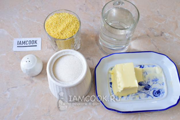 Для приготовления пшенной каши на воде в мультиварке-скороварке подготовьте необходимые ингредиенты. При выборе пшена необходимо потрясти упаковку и внимательно рассмотреть зернышки. Выбирайте пшено равномерно желтого цвета, без примесей.