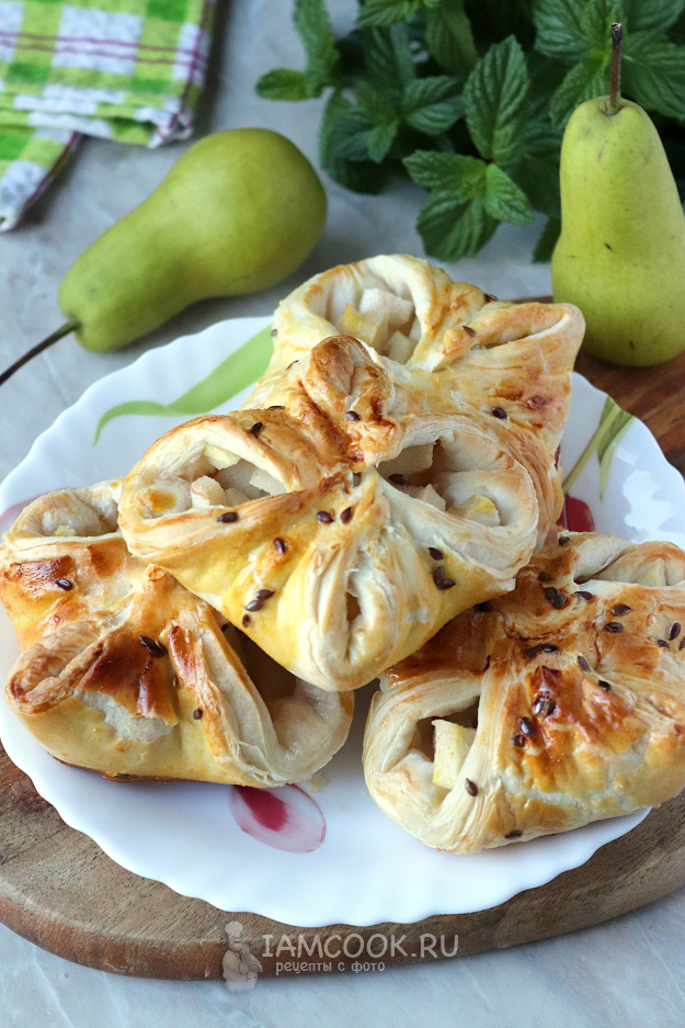 Выпекайте слойки с грушей в духовке, разогретой до 180 градусов, 20-25 минут, до красивого золотистого цвета.