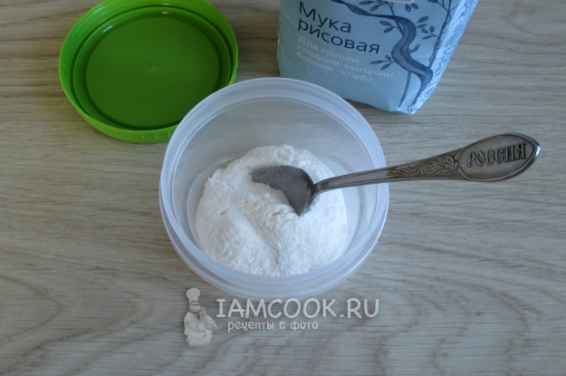 Положите в баночку или контейнер 12 чайных ложек без верха муки, например, рисовой.