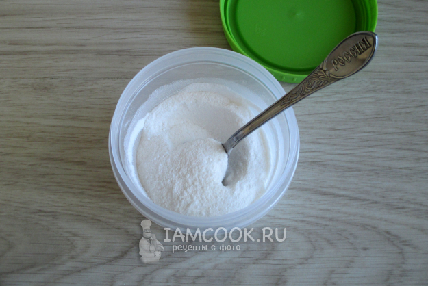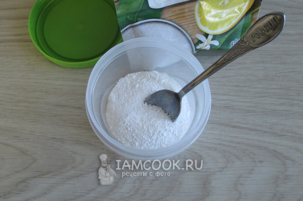 Такой же чайной ложкой отправьте к муке порошок лимонной кислоты.
