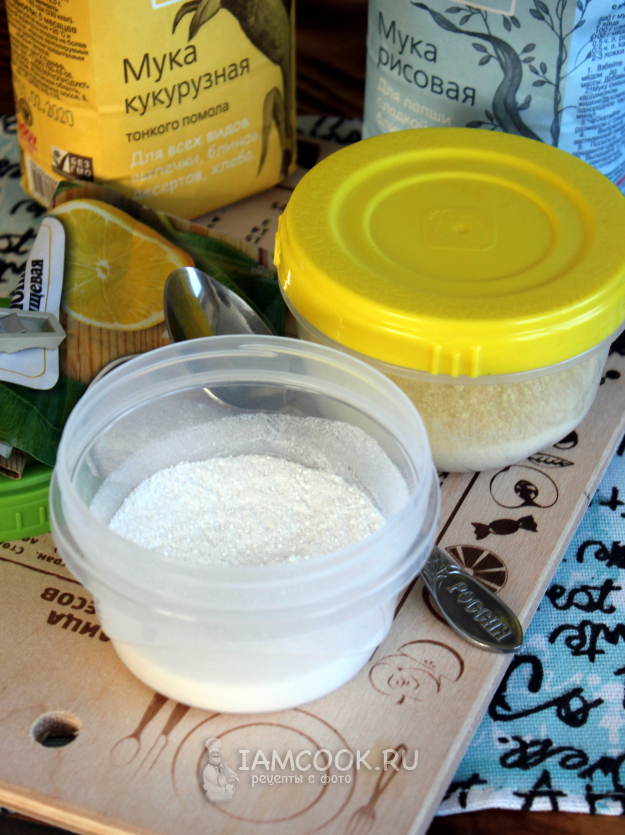 Для приготовления разрыхлителя без глютена используйте кукурузную, рисовую, гречневую муку или смесь из них, а также подходит и крахмал, например, кукурузный, картофельный или тапиоковый.
