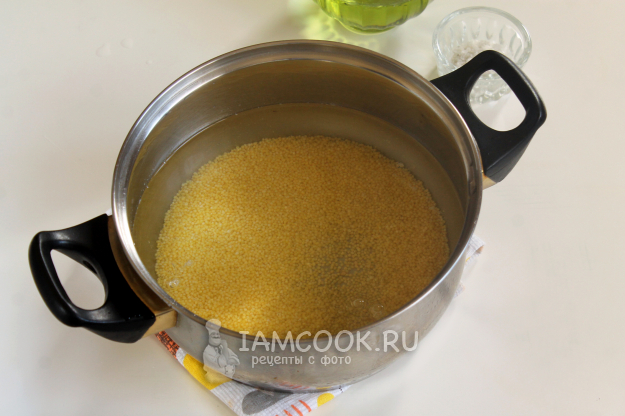 Для приготовления жидкой пшенной каши на воде возьмите продукты по списку.