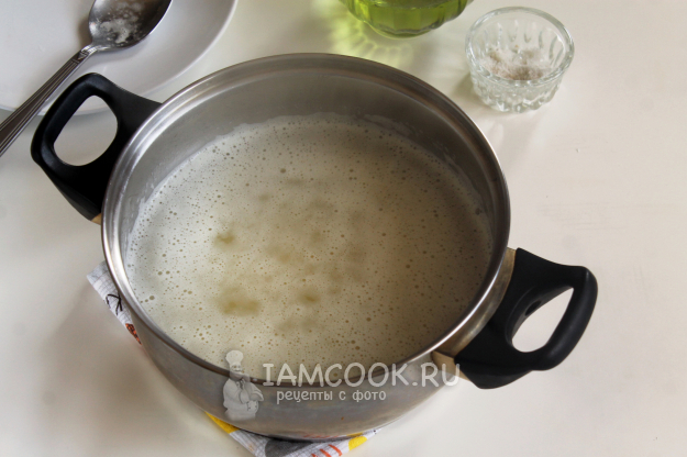 Закипятите, бросьте соль. Если варите сладкую кашу, добавьте по вкусу сахар.