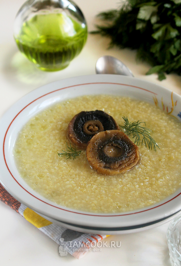К жидкой пшенной каше на воде добавьте, например, грибы, зелень.