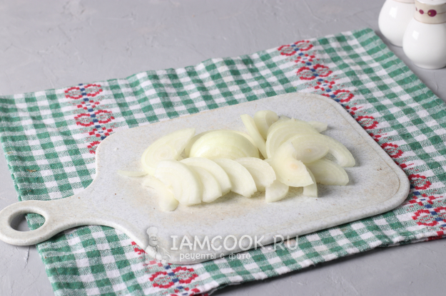 Говядину убрать со сковороды в миску и накрыть, а в сковороду добавить немного масла и обжарить пару минут лук, затем к нему присоединить грибы и готовить до выпаривания жидкости. В конце посолить и поперчить.