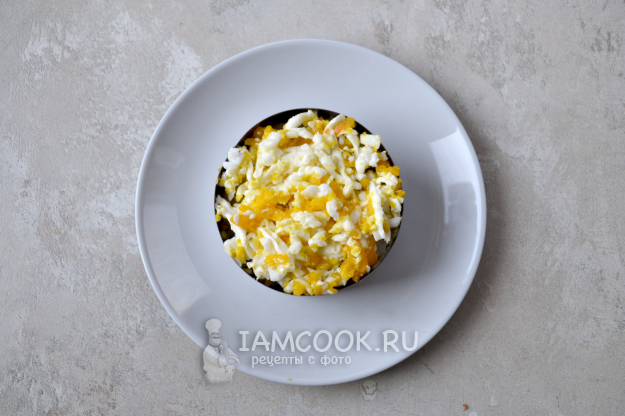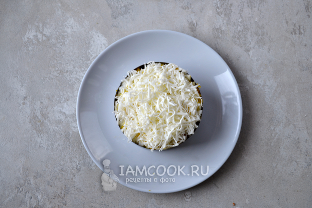 Верхний слой - натертый на мелкой терке сыр.