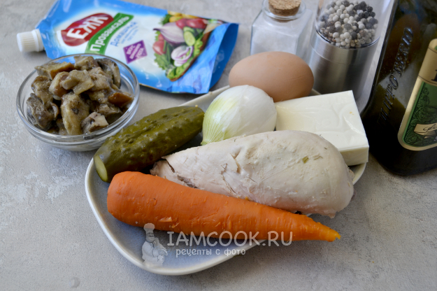 Подготовьте продукты для салата «Мельница».
