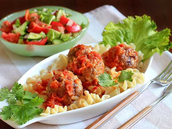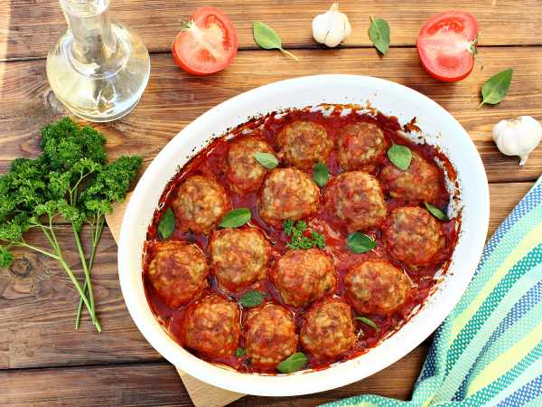 Из фарша сформируйте тефтели. Выложите их в форму, смазанную маслом.