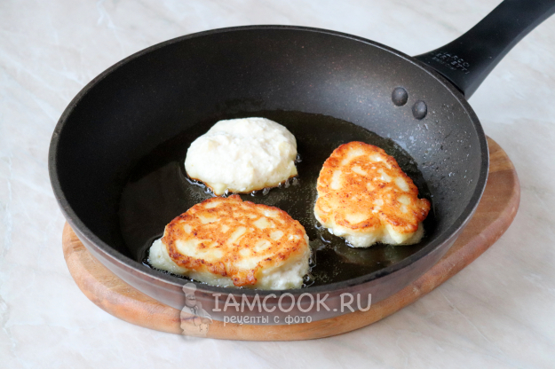 На сковороде разогрейте растительное масло и выложите столовой ложкой тесто, формируя небольшие оладьи круглой или овальной формы. Жарьте их на умеренном огне по 3-4 минуты с каждой стороны, до красивого золотистого цвета. Если огонь будет слишком сильным, оладьи быстро подгорят, а внутри останутся сырыми. Готовые экземпляры переложите на бумажное полотенце, чтобы впиталось лишнее масло.