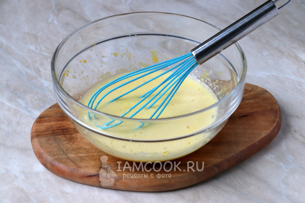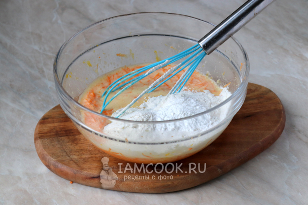 В жидкую основу введите пшеничную муку с разрыхлителем.