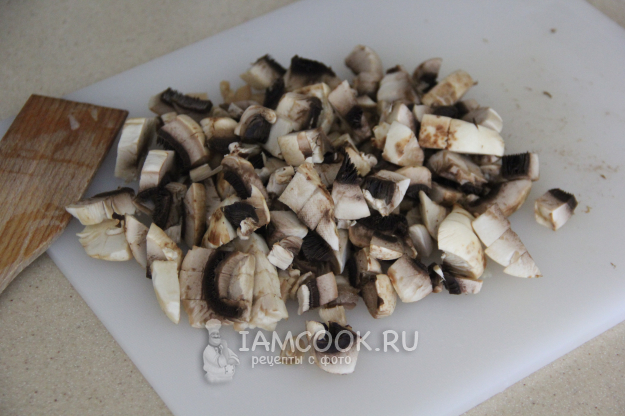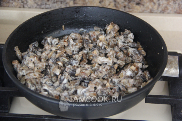 Обжарить шампиньоны при помешивании в течение 10-15 минут.