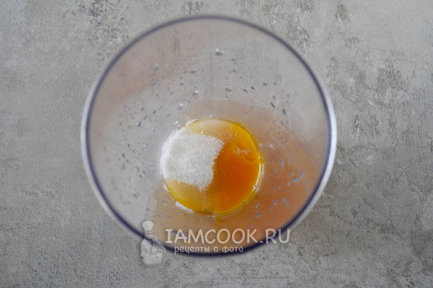 К желткам добавьте сахар. Сахара кладите в зависимости от сладости яблок и собственного вкуса.