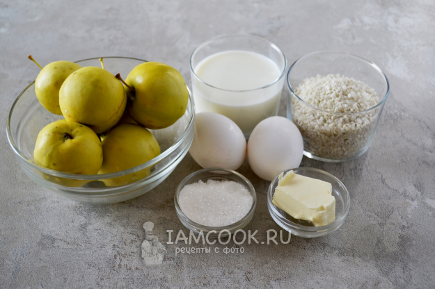 Возьмите продукты для приготовления рисового пудинга с яблоками в мультиварке. Сливочное масло достаньте заранее из холодильника, оно должно быть мягким.