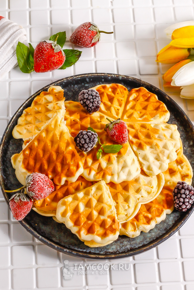 Подготовьте необходимые ингредиенты для создания румяных сливочных вафель в вафельнице.