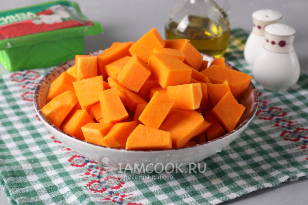 Для приготовления тыквенного супа-пюре с брынзой подготовить из списка необходимые ингредиенты.