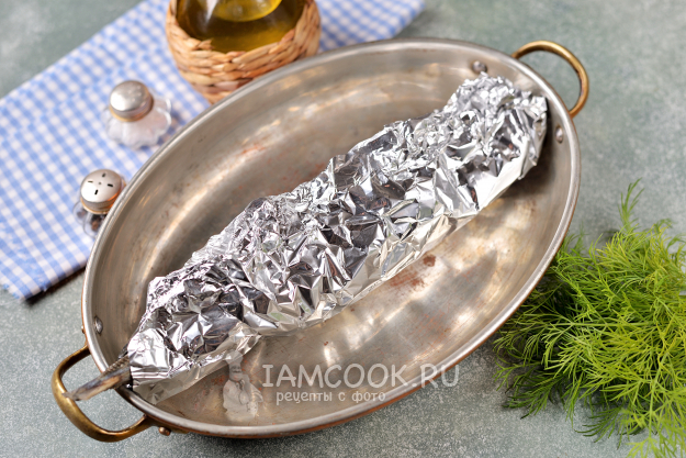 Спустя время рыбу можно подавать, но на вид она будет парной, поэтому разверните фольгу и поставьте ее на 5 минут под верхний гриль.