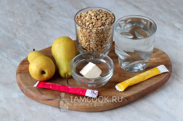 Продукты для приготовления овсяной каши с грушей - перед вами.