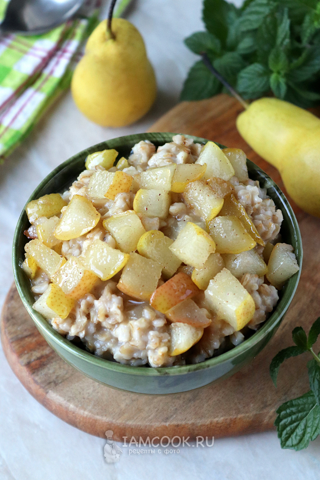 Вкуснейшая овсяная каша с грушей готова. Разложите её по тарелкам и подавайте на стол в тёплом виде.