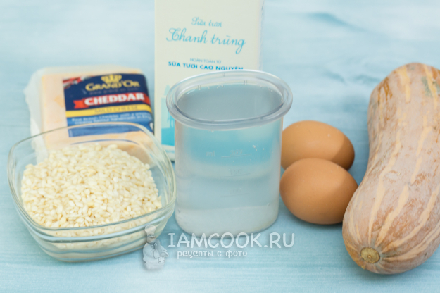 Для приготовления рисово-тыквенного суфле подготовьте продукты по списку.