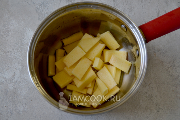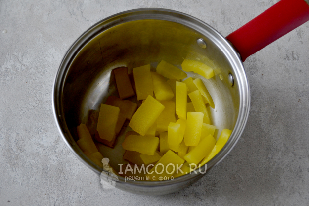 Сварите тыкву до мягкости. Воду слейте из сотейника.