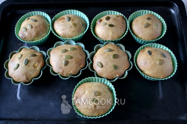 Выпекайте тыквенные кексы на растительном масле в течение 30-35 минут до сухой шпажки. Но в любом случае ориентируйтесь на особенности своей духовки.