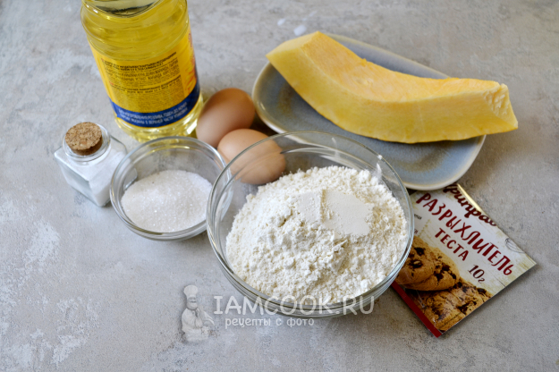 Подготовьте продукты для тыквенных кексов на растительном масле. Тыкву очистите от кожуры и семечек.