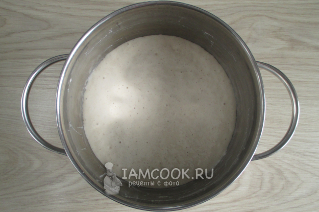 На опаре должны появиться признаки брожения: подъём, увеличение в объёме, пузырьки на поверхности.