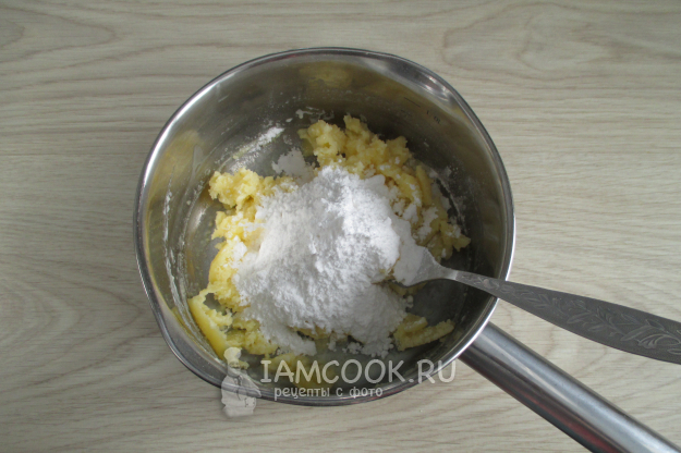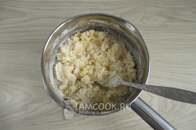 Потом вмешайте в сладкую масляную массу муку и ванилин. Получится типа песочное тесто.