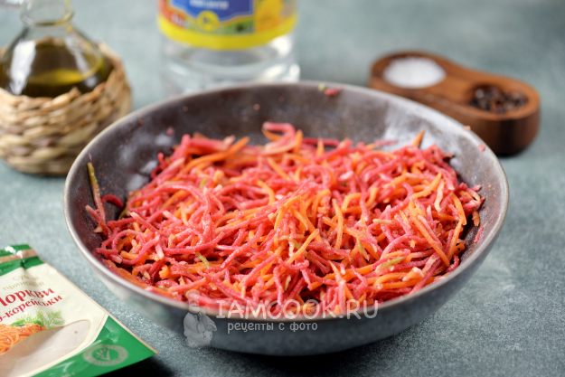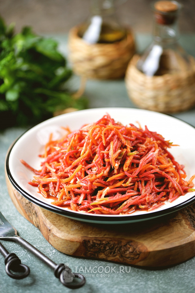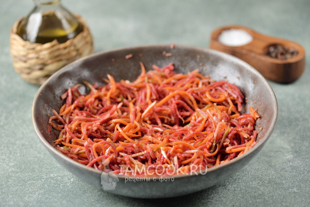Спустя указанное время салат из редьки по-корейски и моркови уже можно дегустировать.